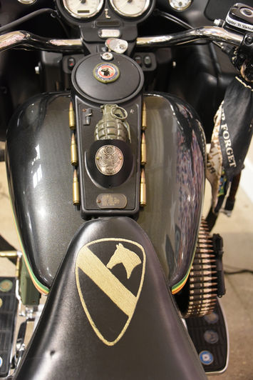 Every detail of this motorcycle has been carefully designed to honor Roger's memory and his service. From the custom embroidery bearing his name on the backrest to authentic Vietnam-era Military items incorporated into the design, this motorcycle tells a story of friendship, sacrifice, and remembrance.